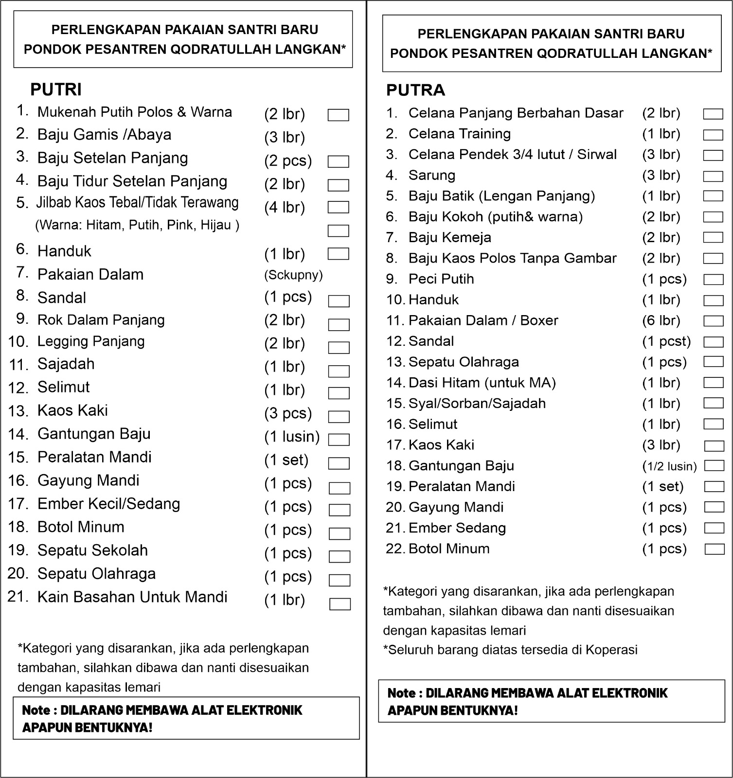 Pakaian Keluar Asrama (Kantin, Koperasi, Dapur, Laundry dll)